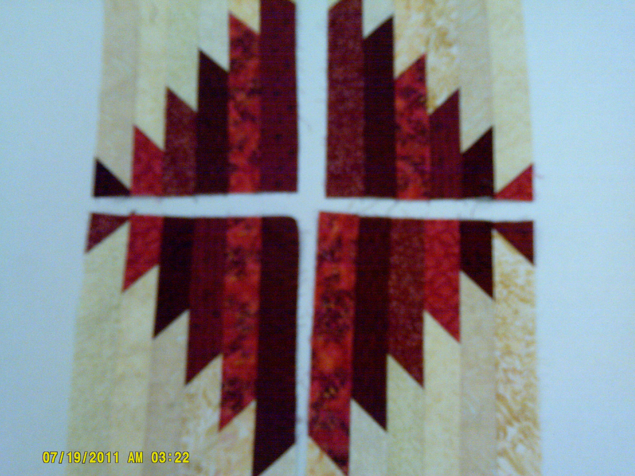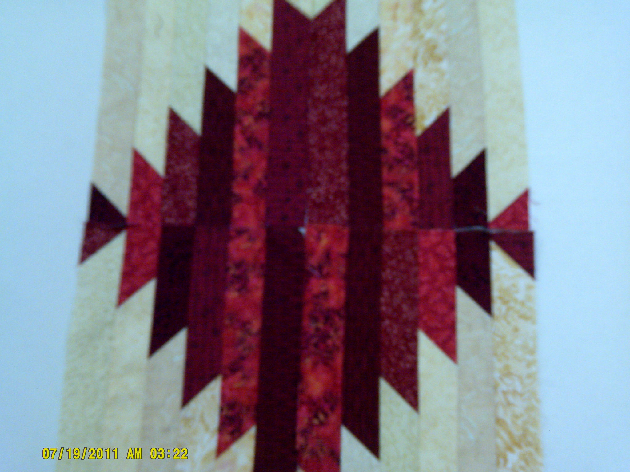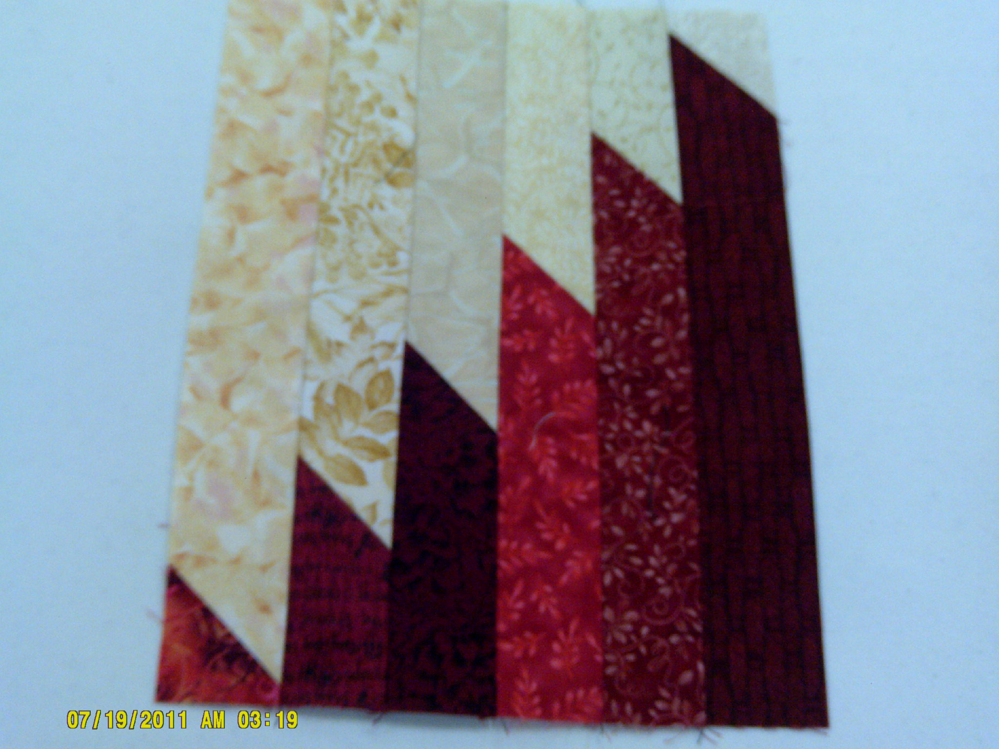 Should now look like this. Here, I used a variety of reds and creams for a scrappy look.