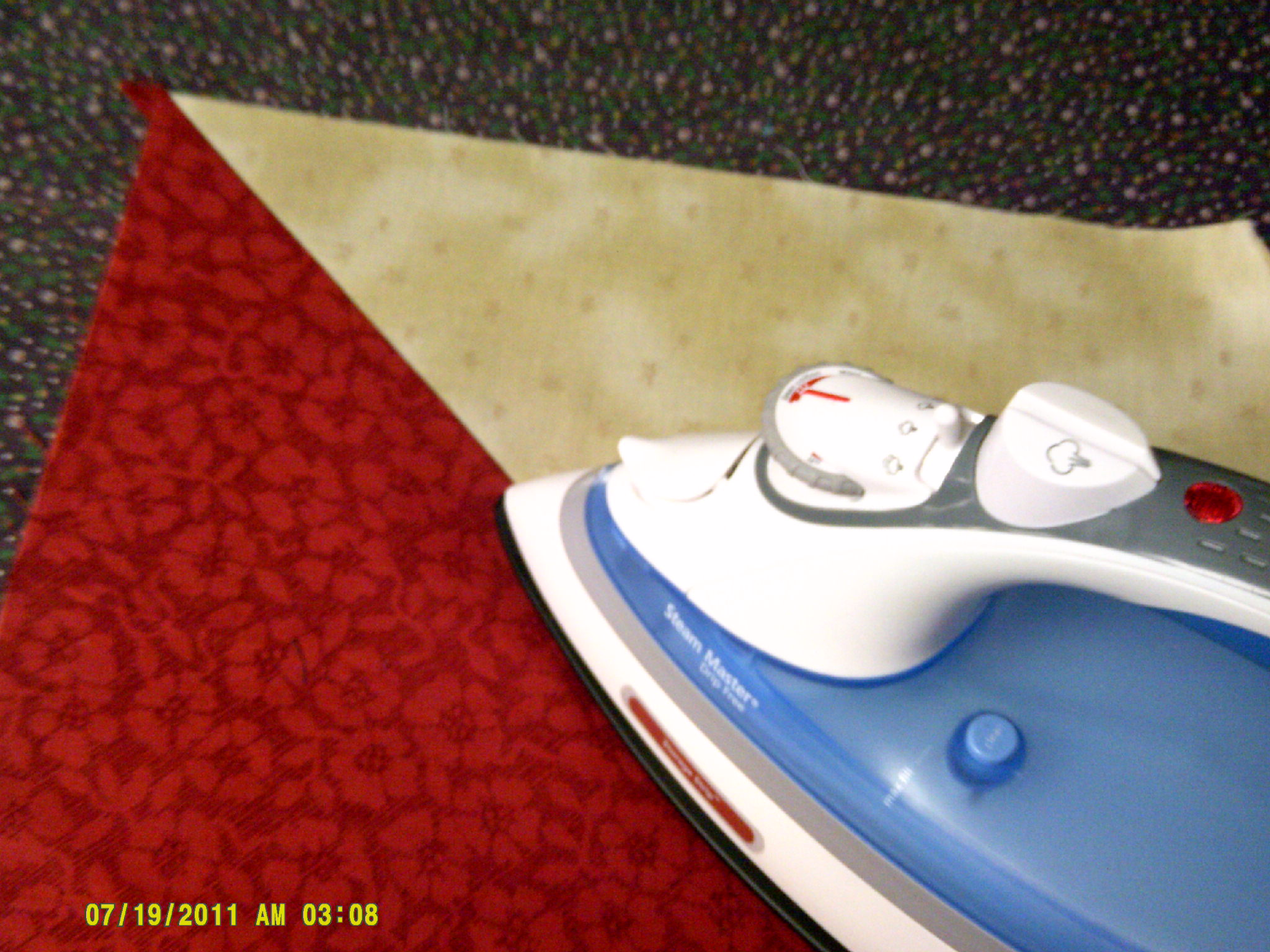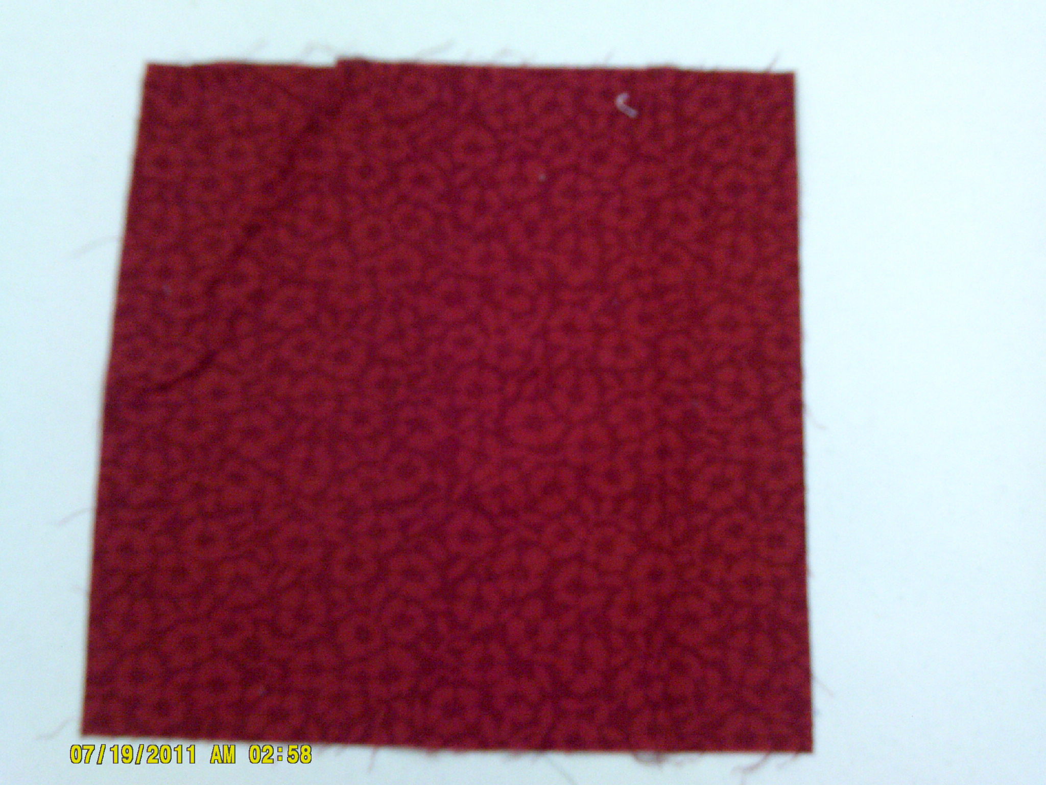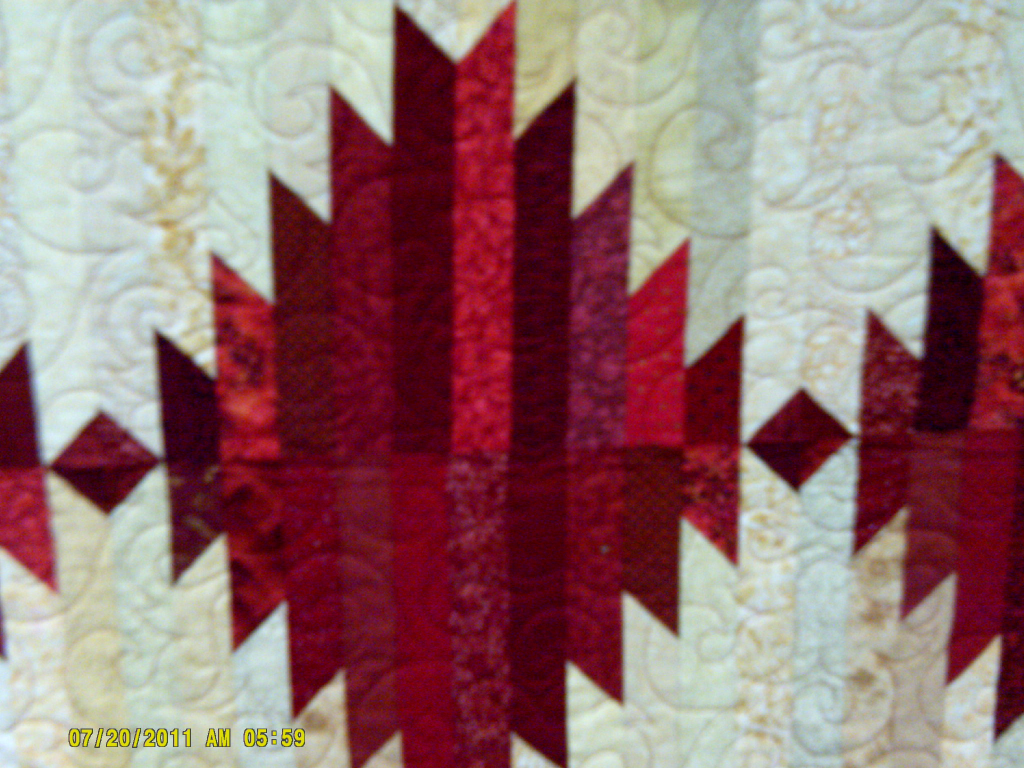 Should now look like this. Here, I used a variety of reds and creams for a scrappy look.