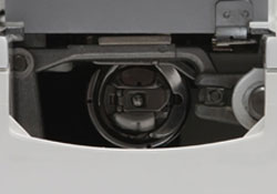 A new bobbin case latch and an enlarged bobbin case area make it easier to remove and replace the bobbin.
