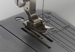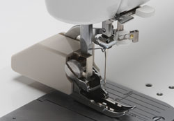 The even feed foot makes a reliable feed. It ensures beautiful seams when sewing difficult-to-feed fabrics such as georgette