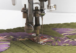 The feed dog can be raised and lowered simply by pressing a switch. When quilting, the drop feed allows you to sew curved