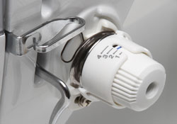 The knee lifter lever lifts / lowers the presser foot without using your hands. The presser foot can be raised as high as 12mm.